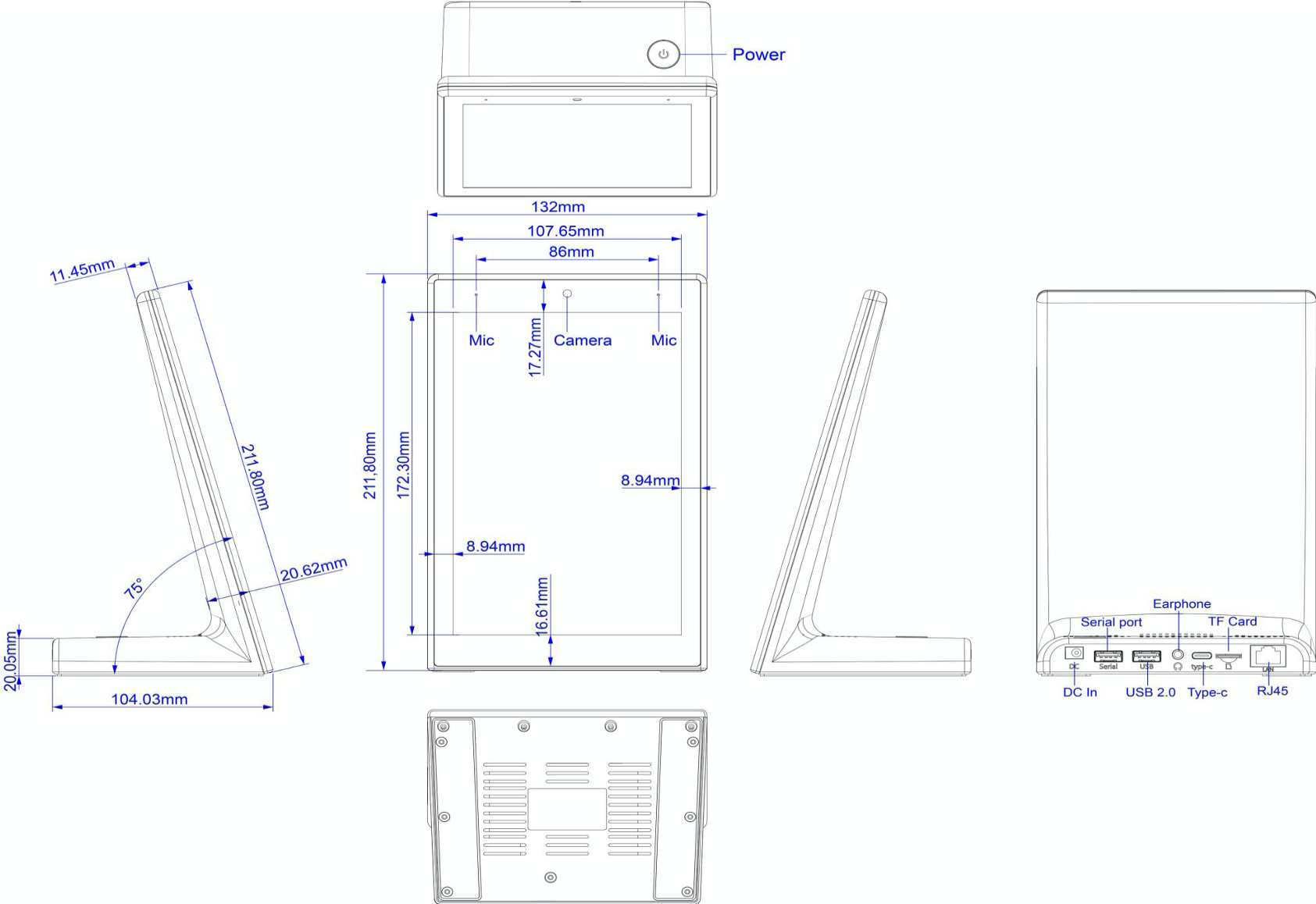 Screen size: 8inch, Screen type: Touchscreen - Capacitive, LCD Panel Type: IPS Panel, LCD Panel resolution: 800*1280, Operation System: Quad Core Cortex A17, 1.8G, Rooted, Android 8.1 - RockChip RK3288, Interface - Connection portals: HDMI OUT, TF cardreader, LAN input for Internetconnection - RJ45, 3.5mm Jack, Power Input DC 12V/1.5A, 2x USB 2.0, Network options: Wifi, LAN network, Bluetooth 4.0, Resolution Internal VideoPlayer: 1080P, Camera: 2.0MP front camera, Speakers: 2*1W, Mounting options: Counter Model, Start-Up: AutoStart by plug-in the power-adapter, Memory: RAM 2GB - Internal Memory: 16GB