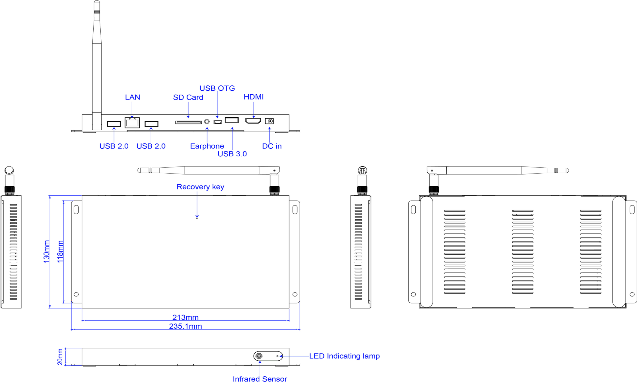 | Accessories | Remote Control or User Manual or Power Adapter 12V-1A or WIFI Antenna |