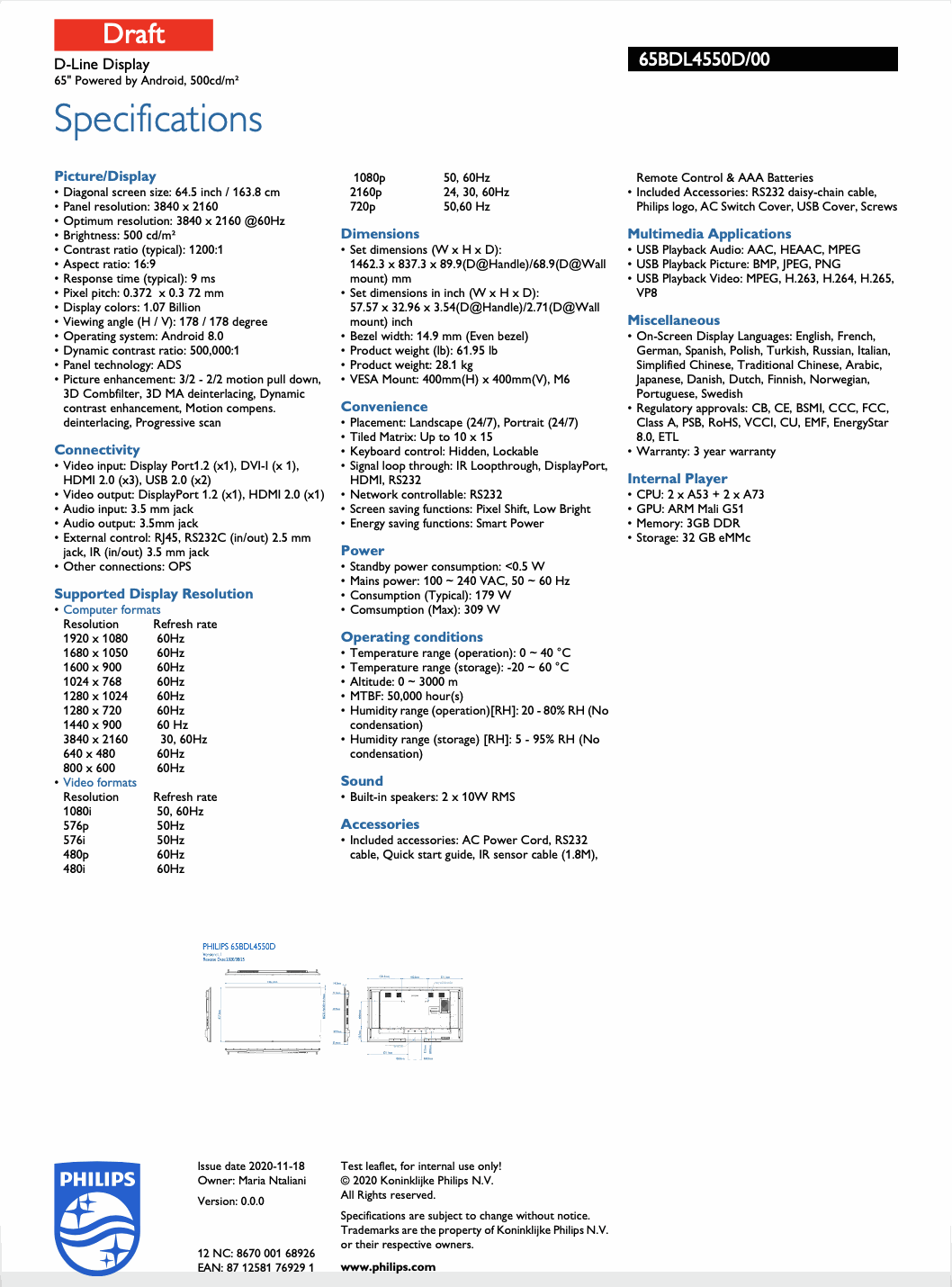 65BDL4550D Productsheet 65inch Philips D-line.pdf