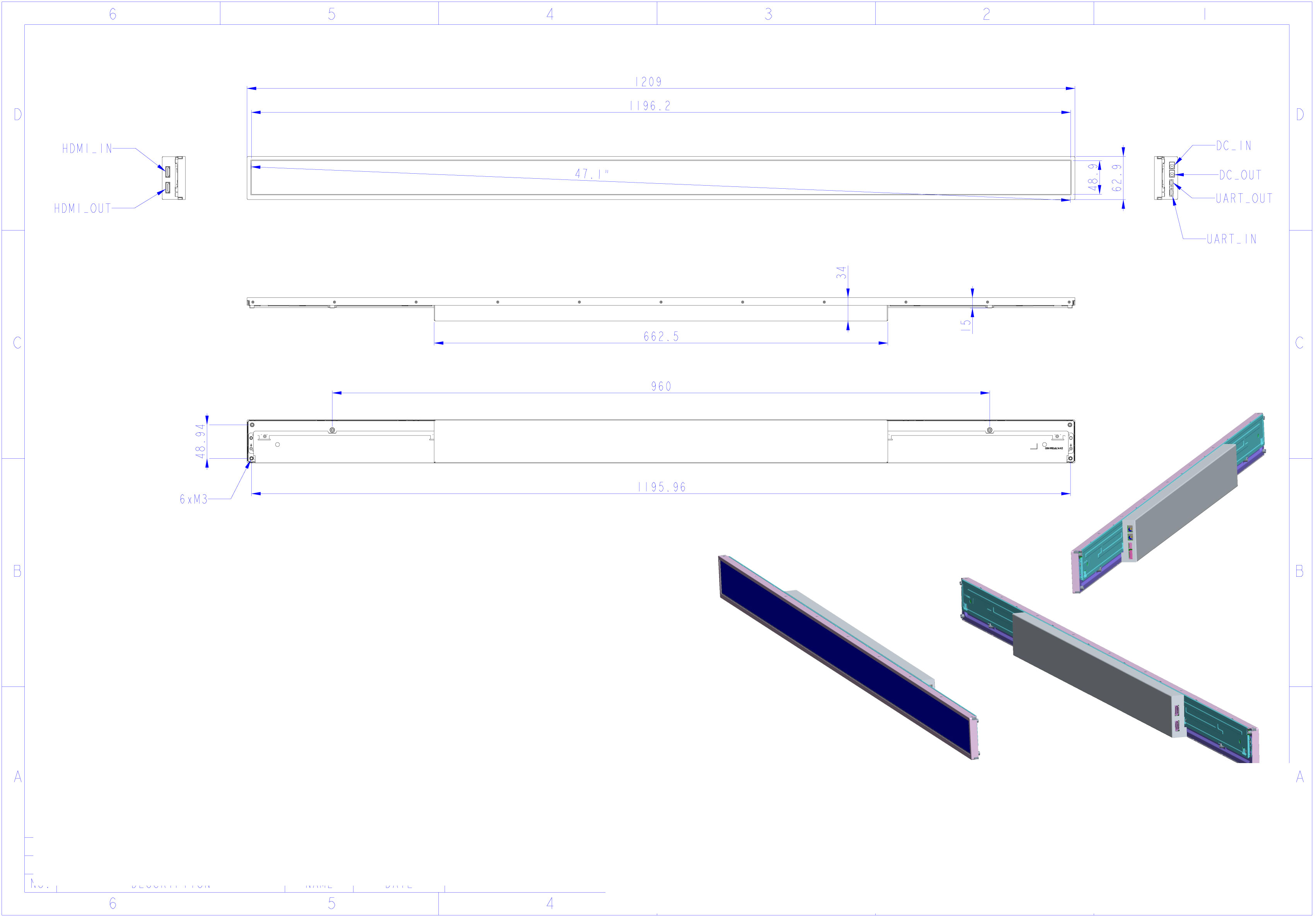 Screen size: 47.1inch, Screen type: Non-Touchscreen, Screen type: Ultra Wide Stretched, LCD Panel Type: LCD Panel, LCD Panel resolution: 3840*160, Resolution Internal VideoPlayer: 1080P, Interface - Connection portals: HDMI IN, HDMI OUT, SD Cardreader, USB Portal, Mini USB Portal, Power Input DC 12V/3.5A, Multi Usage: Single Monitor by HDMI IN, Multi Monitor (+videowall function) by HDMI IN + OUT, MediaScreen (internal Mediaplayer for AutoLoop content), Start-Up: AutoStart by plug-in the power-adapter, Accessories: Remote Control, Accessories: Power Adapter, Housing type: Closed metal housing, Usage: 14/7