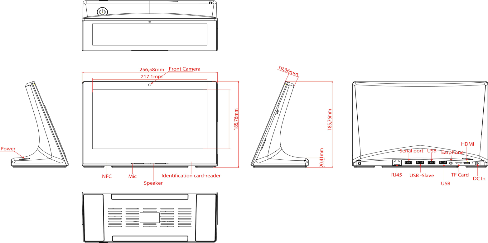 Screen size: 10.1inch, Screen type: Touchscreen - Capacitive, LCD Panel Type: IPS Panel, LCD Panel resolution: 1280*800, Operation System: Rooted, Android 8.1 - RockChip RK3288, Quad Core Cortex A17, 1.6G, Interface - Connection portals: HDMI OUT, TF cardreader, LAN input for Internet connection - RJ45, 3.5mm Jack, Power Input DC 12V/1.5A, 2x USB 2.0, Network options: Wifi, LAN network, Bluetooth 4.0, Resolution Internal VideoPlayer: 1080P, Camera: 2.0MP front camera, Speakers: 2*1W, Mounting options: Counter Model, Start-Up: AutoStart by plug-in the power-adapter, Memory: RAM 2GB - Internal Memory: 16GB, Battery: 5000mah/3.7V