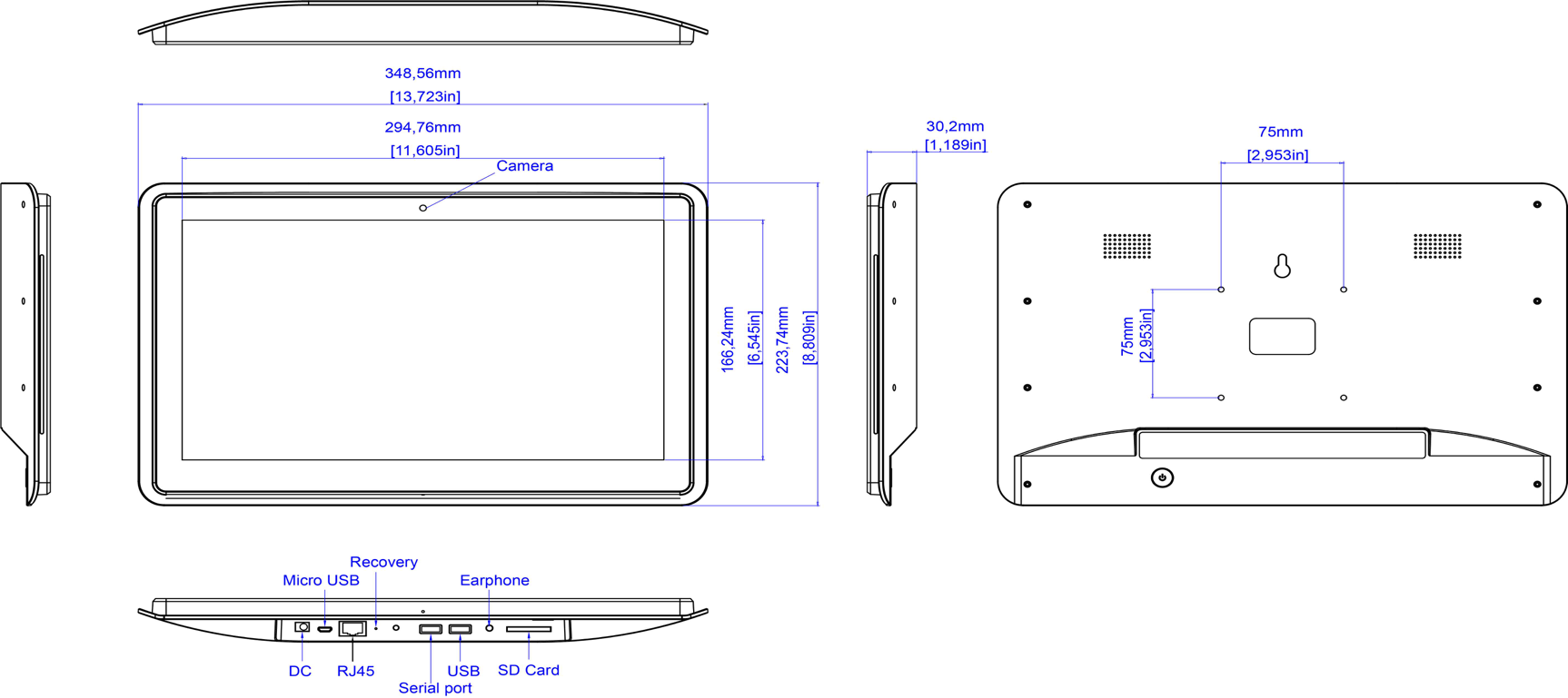 Screen size: 13.3inch, Screen type: Touchscreen - Capacitive, Operation System: Android 8.1 - Rockchip RK3288, Quad Core Cortex A17, 1.8G, Rooted, Interface - Connection portals: PoE (power over ethernet), SD Cardreader, USB Portal, LAN input for Internet connection - RJ45, Micro USB Portal, 3.5mm Jack, Power Input DC 12V/1.5A, LCD Panel Type: IPS Panel, LCD Panel resolution: 1920*1080, Memory: RAM 2GB - Internal Memory: 8GB, Resolution Internal VideoPlayer: 1080P, Ratio: 16:10, Network options: Wifi, LAN/WLAN, Bluetooth 4.0, Housing type: White - White, Speakers: 2*1.5W, PowerAdapter: AC/DC 12V/1.5A, Usage: 24/7, Camera: 2.0MP front camera, Mounting options: VESA 75x75mm - screwholes 4M