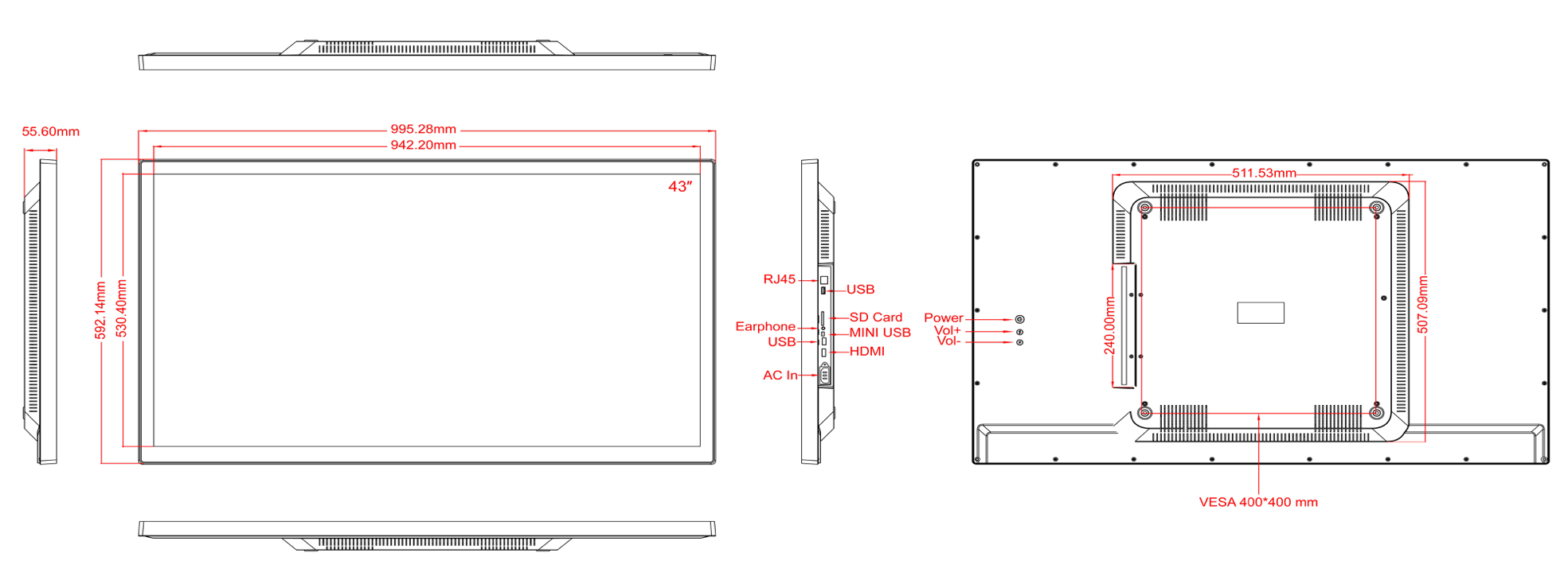 | Mounting options | VESA 400x400mm |